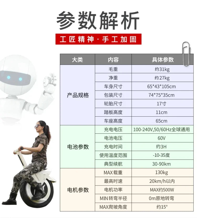 Electric single-wheel balance car single-wheel motorcycle off-road model adult 22-inch oversized feeling can sit smart seats